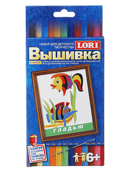 В набор для вышивки гладью "Рыбки" входит ткань с нанесенным рисунком, нитки для вышивания, игла для вышивания и инструкция.