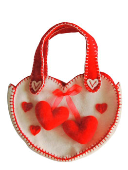 Теперь Ваша маленькая модница сможет заиметь столько ярких и красивых сумочек, сколько ей самой удастся сшить, может быть с Вашей помощью. Оригинальная флисовая сумочка в виде сердечка, украшенная множеством ярких сердец, удачно дополнит девичий гардероб, вызовет восхищение подруг. В набор для детского творчества "Сумочка - Сердечки" входят ткань, нитки, инструкция, схема шитья, выкройка сумочки и деталей украшения.