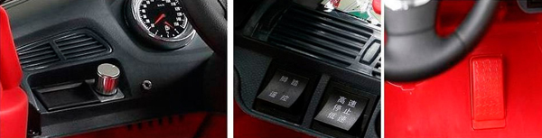 Все детали авто тщательно проработаны и качественно выполнены. А как иначе? Ведь электромобиль изготовлен по лицензии и под контролем компании BMW. Эта модель может похвастаться особенно тщательной проработкой деталей торпедо: здесь и кнопка запуска и выбора скорости, и рычаг переключения хода (вперед/назад), и мягкая неоновая подсветка. Специальное фактурное покрытие руля имитирует кожаную оплетку.