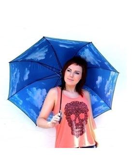 Очень оригинальный зонт-трость с принтом ясного неба и облаков с тыльной стороны. Снаружи зонт чёрного цвета, что делает его ещё более оригинальным и привлекательным.