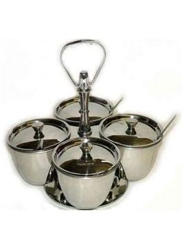 Оригинальная подача 4 различных соусов при значительной экономии места на столе, даёт разнообразие в выборе.