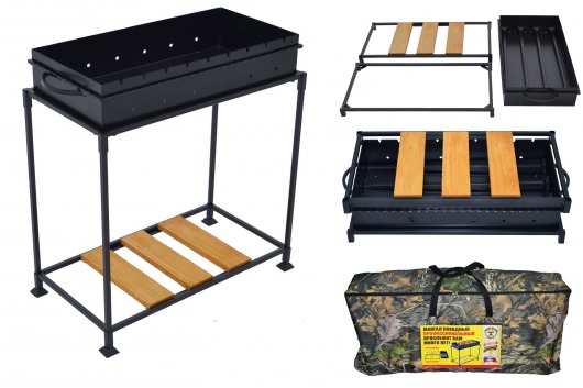 И это не единственные преимущества складного мангала МД 4-4-4. Несмотря на компактность, его конструкция отличается особой прочностью: мангал изготовлен из жаростойкой стали толщиной 4 мм, которая выдерживает высокие температурные нагрузки в течение долгого времени и не деформируется. Такой мангал прослужит вам много лет. Для вашего дополнительного удобства в стойку для жаровни встроена дровница.