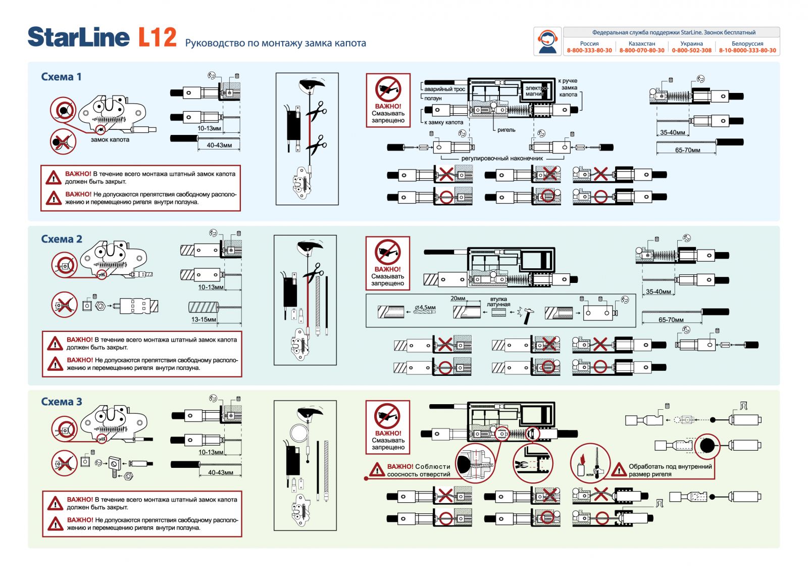 StarLine L12 наиболее оптимально подходит для автомобилей, оснащенных двумя штатными замками капота.