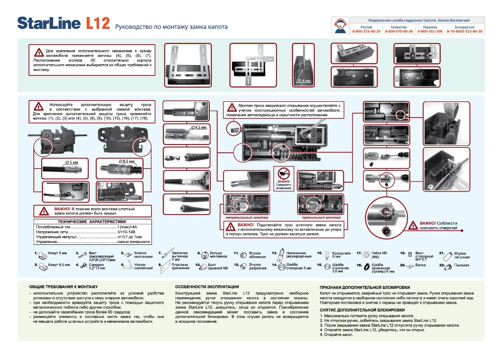 Вопросы и отзывы про Электромеханический замок капота StarLine L12