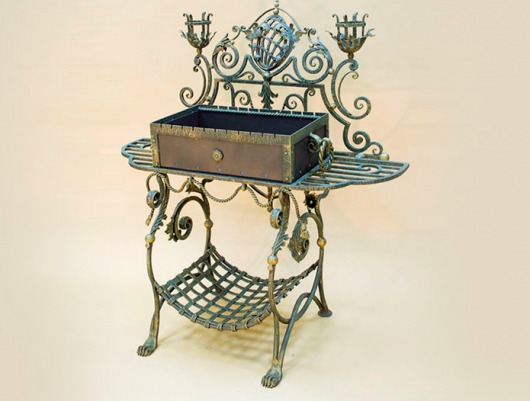 Кованый мангал для дачи М-07 — эксклюзивная изящная модель, которая прекрасно впишется в дизайн любого загородного участка. Несмотря на утонченность, его конструкция отличается особой прочностью. Стойка усилена множеством элементов ручной ковки, а ящик мангала изготовлен из жаростойкой стали толщиной 4 мм, которая выдерживает высокие температурные нагрузки в течение долгого времени и не деформируется. Сбоку от жаровни располагается 2 кованых столика для посуды, а на стойке размещена оригинальна дровница.