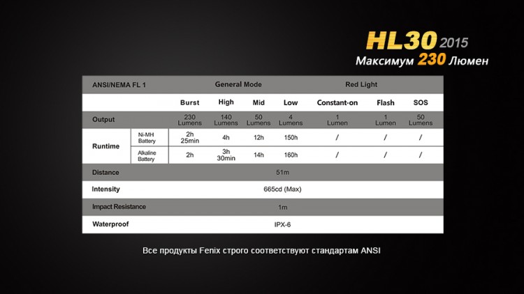 Налобный фонарь Fenix HL30 2015 светит с яркостью до 230 люмен и работает на базе двух элементов питания формата АА. Этот фонарь вполне может работать под дождем и не боится грязи, а потому он станет хорошим помощником в туристических походах, выездах на рыбалку или иного вида активного отдыха на природе.