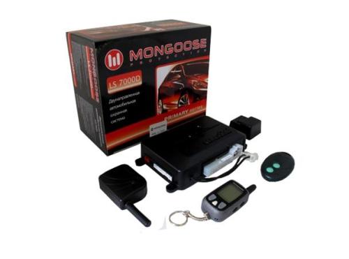 Автосигнализация Mongoose LS-7000D имеет радиус действия до 900 метров по каналу пейджера. Сигнализация укомплектована двумя брелоками, при том, что основным является брелок с ЖКИ-дисплеем, на котором указываются зоны срабатывания охраны. Система имеет возможность дистанционного запуска двигателя.