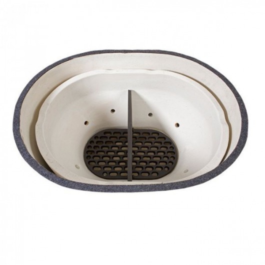С помощью чугунного разделителя вы можете разделить гриль Primo Oval XL на 2 камеры. В одной из них можно готовить напрямую на углях, а во вторую ставить такие блюда, которые могут томиться при невысокой температуре. Или вы можете использовать только половину гриля, если вам не нужно готовить для большой семьи или компании. Экономия углей очевидна.