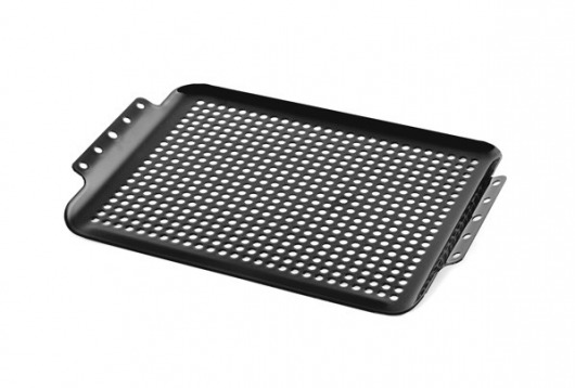 Большой прямоугольный противень специально предназначен для жарки мелких кусков мяса, овощей или морепродуктов, которые слишком малы для стандартных решеток-гриль. Низкие бортики и перфорированные отверстия позволяют высокой температуре и дыму свободно циркулировать вокруг продуктов, равномерно пропекая их и насыщая ароматом. Подходит для больших керамических грилей Big Green Egg XL, Large.
