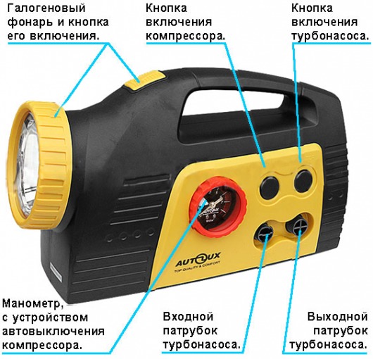 Компрессор автоматически выключается, при достижении требуемого давления в шине