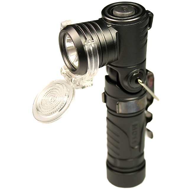 Конструкция диффузионной линзы предусматривает возможность откинуть ее не снимая с фонаря. Эта деталь помогает держать линзу под рукою даже тогда, когда она не используется и не потерять этот небольшой аксессуар.