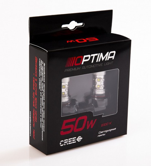 Светодиодные лампы Optima Premium HB4 (9006) Cree 50W 12-24V 5100K – это лампы с увеличенной светоотдачей. Такие показатели достигаются благодаря использованию современных технологий CREE. Лампы Optima работают эффективнее, характеризуются более мощным световым потоком.