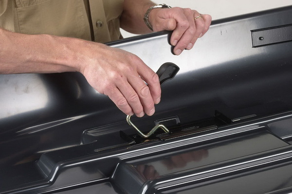 Необходимое крепление уже находится внутри бокса, поэтому вам не придется использовать дополнительные инструменты. Несколько движений — и автобокс надежно установлен на крыше.