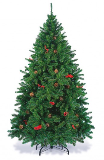 Искусственная сосна «Новогодняя сказка» от ЕлкиТорг по внешнему виду совершенно неотличима от настоящей живой ели. Стройный конусовидный силуэт и пушистая зеленая хвоя с настоящими еловыми шишками и веточками рябины только подчеркивают это сходство. Такая елка высотой в 180 см станет настоящим украшением для вашего дома или офиса.