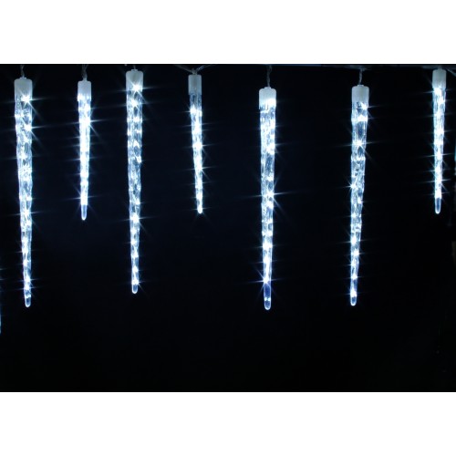 В комплекте 5 сосулек длинной 30 см (9 ламп в каждой) и 5 сосулек длинной 50 см (15 ламп в каждой). Для использования внутри и вне помещения.