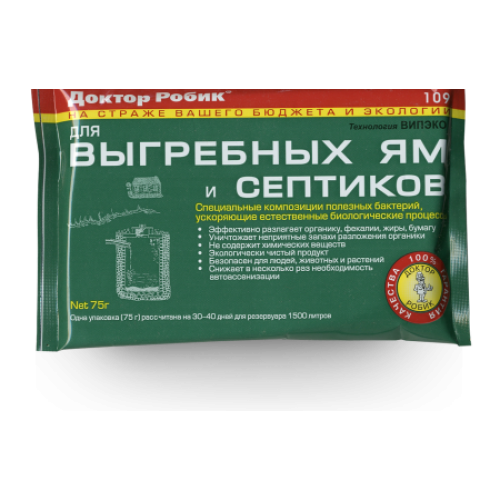 Вопросы и отзывы про Универсальное средство для выгребных ям и септиков Доктор Робик 109 (75 грамм)