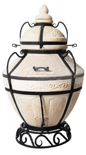В отличие от большинства других тандыров в базовую комплектацию тандыра Аладдин также входят 2 подставки: круглая для самого тандыра и вертикальная для навешивания совка и кочерги, которая одновременно является и подставкой для крышки тандыра - это не только визуально подчеркивает красоту тандыра, но и обеспечивает дополнительное удобство пользования столь большим и тяжелым изделием.