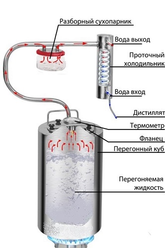 Разборный сухопарник из стеклянной банки поможет Вам отследить наполняемость емкости сухопарника сивушными фракциями (во избежание переполнения), а также ароматизировать продукт в процессе перегонки путем заложения в сухопарник ароматических ингредиентов. Смотреть на работу такого сухопарника одно удовольствие — все видно как на ладони.