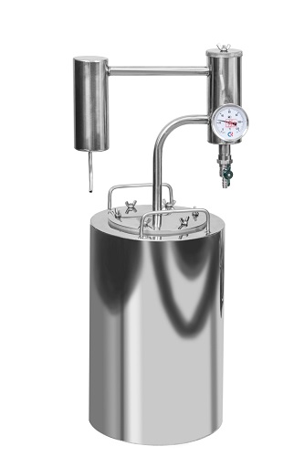В комплектацию входит: перегонный куб, змеевик-холодильник, барашки 6 штук, силиконовая прокладка, переходные трубки, книжка с рецептами, презентабельная упаковочная коробка, технический паспорт, гарантийный талон, биметаллический термометр, сухопарник, крышка на сухопарник.
