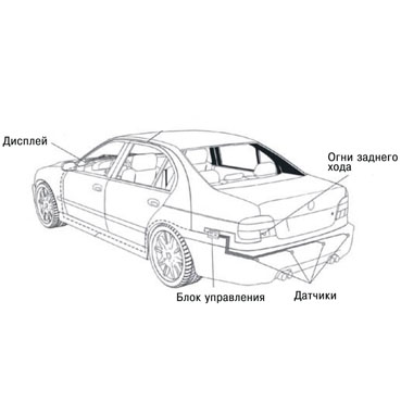 Цветное фронтальное табло индикатора (со встроенным звуковым зуммером) показывает расстояние до препятствия. Звуковой сигнал предупреждает о приближении к опасности, а динамик встроен в табло индикатора. Таким образом, при появлении опасного объекта вы увидите на дисплее индикацию расстояния до него и услышите звуковой сигнал. Звуковые сигналы различаются между собой в зависимости от удаленности препятствия.