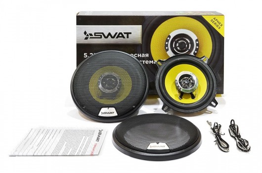 SWAT SP-A5 – коаксиальная акустическая система 5,25-дюймового размера, которая оснащена шелковы твиттером с неодимовым магнитом и диффузором из полипропилена. Такое сочетание обеспечивает стабильную работу даже при скачках напряжения и других неблагоприятных факторах. Модель отличается простотой инсталляции и может использоваться как самостоятельно, так и совместно с усилителем. Устройство демонстрирует хороший запас мощности – 50 и 220 Вт. Его чувствительность составляет – 88 дБ. SWAT SP-A5 работает в широком диапазоне частот 70 Гц-20 КГц, что дает возможность оценить качественное звучание музыки в различных стилях. Кроме того, вы оцените приемлемую стоимость модели