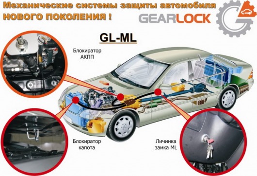 Замок Gearlock ML (механический блокиратор КПП) блокирует механизм переключения передач от несанкционированного переключения. Устанавливается под капот машины, а не в салон, как другие блокираторы. Такой способ блокировки намного эффективнее "салонного", да и интерьер машины не страдает.