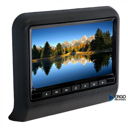 Навесной монитор на подголовник ERGO ER9L с покрытием из высококачественной искусственной кожи оборудован встроенным DVD-проигрывателем c вертикальной загрузкой диска, а также разъёмами USB, SD и HDMI.