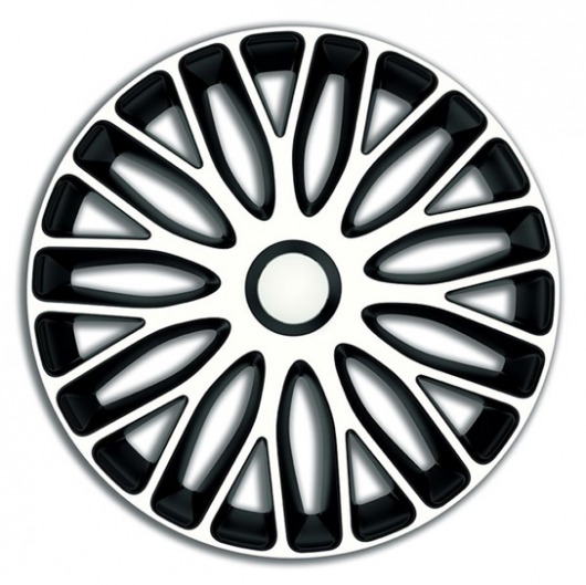 Диаметр автомобильных колпаков на колеса — 16 дюймов. Цвет: бело-черный.