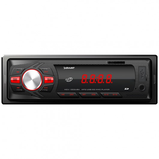 Автомобильная магнитола 1din Swat MEX-1001UBA – недорогое, но функциональное утройство. У MEX-1001UBA есть широкий набор мультимедийных технологий, которые позволяют выжать из устройства по максимуму. Ресивер способен выдавать звук на 2 колонки по 35 ватт. Есть возможность сохранения до 18 радиостанций на цифровом радио-тюнере. Кроме того, реализована возможность прослушивания аудиозаписей через карту памяти.