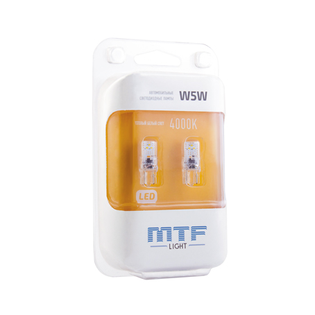 Светодиодные лампы MTF-Light VEGA W5W/T10 4000K – такие лампы работают намного эффективнее, характеризуются более мощной светоотдачей. И все это – без применения радиатора.