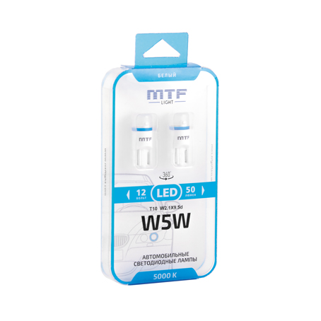 Светодиодные лампы MTF-Light W5W/T10 5000K с матовой линзой – такие лампы работают намного эффективнее, характеризуются более мощной светоотдачей. И все это – без применения радиатора.