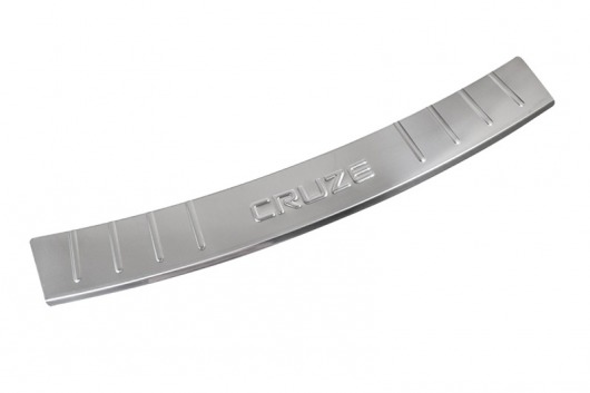 Декоративная накладка на задний бампер Chevrolet Cruze — это аксессуар автомобильного тюнинга, который защищает верхнюю часть заднего бампера от механических повреждений при загрузке или выгрузке вещей из багажника. Декоративные накладки на задний бампер предназначены для автомобилей Шевроле Круз хетчбэк 2011-2013 г.в.