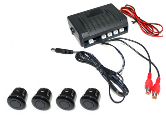 Датчики после их установки подключаются к блоку видеопратроника, монитор подключается к блоку через видео выход. Запитывается блок парктроников и датчики от лампочки фонаря заднего хода, это обеспечивает моментальную активацию парктроников при включении задней передачи. По мере приближения к препятствию бипер видеопарктроников будет оповещать вас о расстоянии с помощью пикающих звуков, частота которых будет увеличивать в зависимости от близости к объекту.