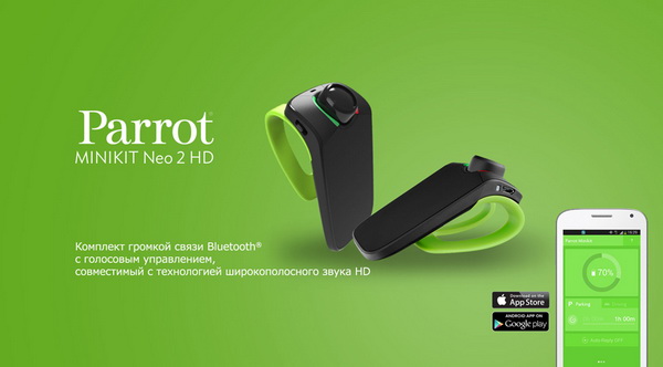 • A2DP (стерео звук по Bluetooth) позволяет слышать вам все навигационные подсказки и другие звуковые оповещения с вашего телефона непосредственно через динамик громкой связи. Это очень удобно, так как иной раз можно и не услышать звуки со своего смартфона. А благодаря Parrot MINIKIT Neo 2 HD  вы точно услышите всё, что нужно.