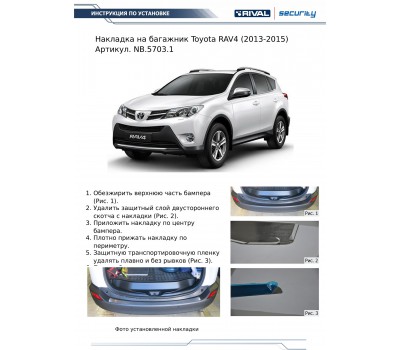 Накладка на порог багажника Rival надежно крепится с помощью полиуретанового влагостойкого двустороннего скотча. При этом она отличается уникальным стилем и дизайном. Так, накладка багажника Toyota RAV-4 не только защищает, но и придает оригинальность и выразительность вашему авто. Кроме того, она обладает долгим сроком службы.