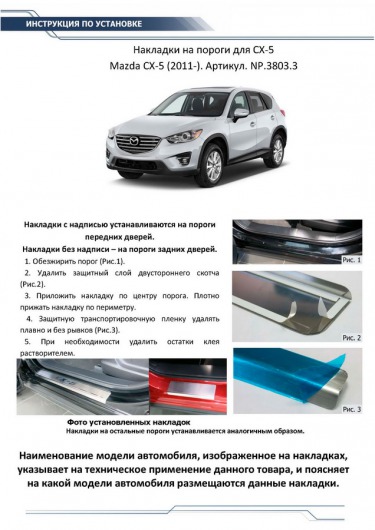 Вопросы и отзывы про Накладки на пороги для Mazda CX-5 от 11 г.в. (Rival)