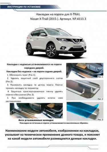Вопросы и отзывы про Накладки на пороги для Nissan X-trail от 15 г.в. (Rival)