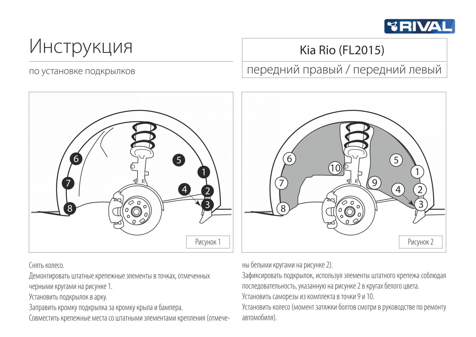 Левый передний подкрылок — это отформованный ударопрочный кожух, который является важной защитной деталью авто. Данный подкрылок крепится спереди с левой стороны. Передний локер разработан специально для автомобилей Kia Rio от 2015 г.в. Благодаря этому он идеально повторяет форму ниши колеса, просто устанавливается, а все технологические отверстия левого подкрылка совпадают со штатными местами крепления.