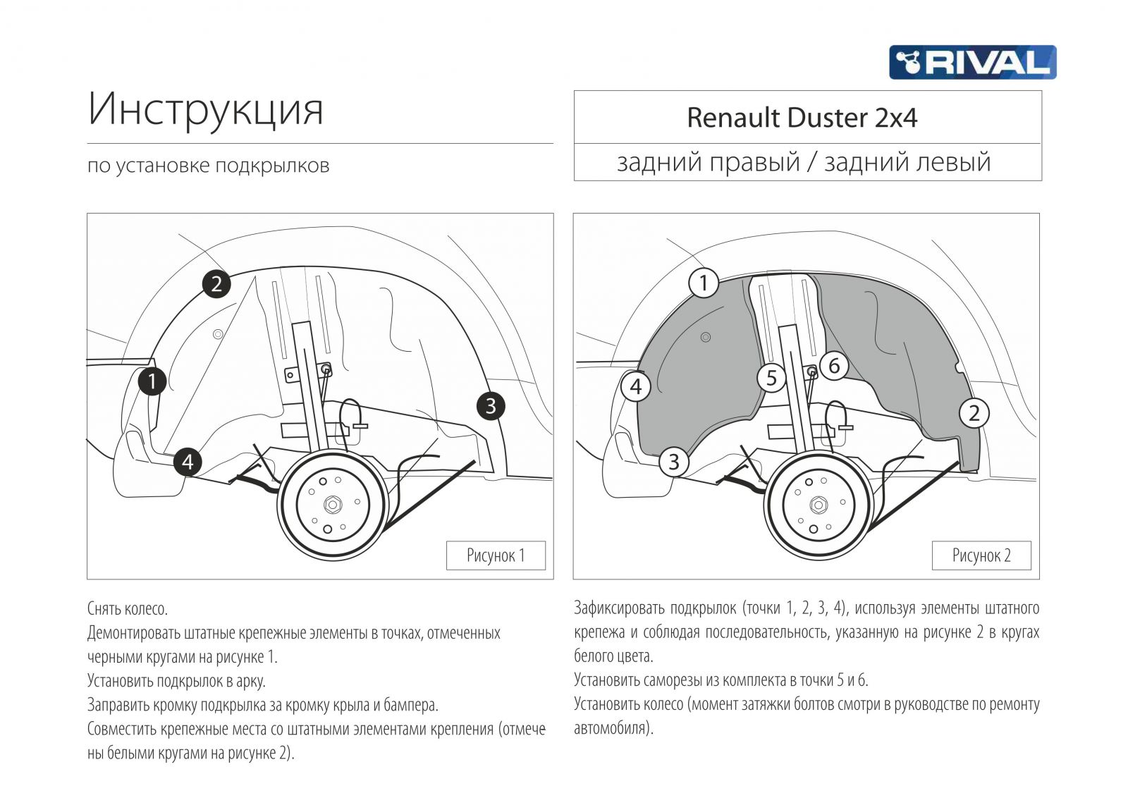 Правый задний подкрылок — это отформованный ударопрочный кожух, который является важной защитной деталью авто. Данный подкрылок крепится сзади с правой стороны. Задний локер разработан специально для автомобилей Renault Duster 2WD от 2011 г.в. Благодаря этому он идеально повторяет форму ниши колеса, просто устанавливается, а все технологические отверстия правого подкрылка совпадают со штатными местами крепления.
