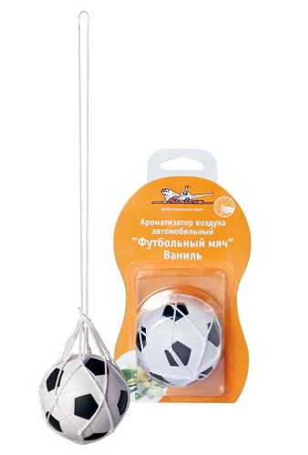Ароматизатор воздуха в салон авто выполнен в форме футбольного мяча. Такой аксессуар не только украсит салон автомобиля, но и создаст приятный аромат и избавит салон машины от неприятного запаха. Данный освежитель воздуха для автомобиля имеет аромат «Ваниль», запах от него не резкий, но довольно стойкий.