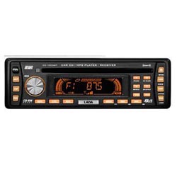 CD-ресивер Lada CD-1025MP отличается янтарным цветом индикации текста, который легко читается и отлично выглядит. Также магнитола обладает янтарной подсветкой кнопок и дисплея, что, в сочетании со стильным черным цветом корпуса, делает эту модель современной и интересной.
