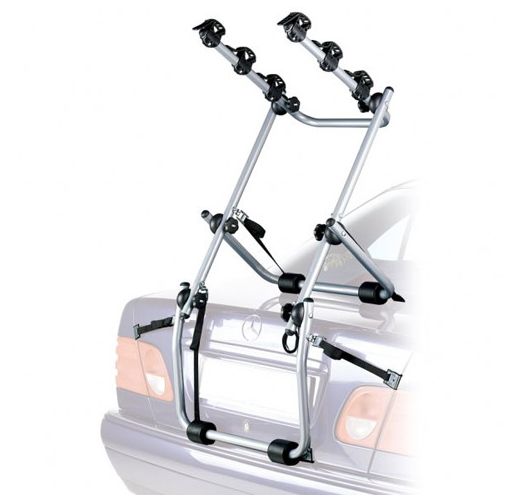 Peruzzo Trevisoуниверсальный багажник для перевозки 3-х велосипедов, который крепится к задней двери автомобиля. Его характерным отличием является то, что велосипеды крепятся высоко, благодаря чему задние фонари не загораживаются.