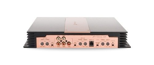 Четырехканальный усилитель µ-Dimension Jr.4-300 имеет превосходный дизайн, который сочетает в себе стильный черный цвет корпуса с медной пластиной, на которую нанесен логотип компании. Органы управления расположены на одной боковой поверхности, в то время, как клеммы подключения расположены на другой. Фильтры высоких и низких частот, которые используются для настройки усилителя, могут быть включены по отдельности или выключены вовсе. Поскольку аппарат является бюджетным, высокоуровневого входа в нем не предусмотрено, а это значит, что подключение к головным устройствам без выходов RCA невозможно. Данная модель усилителя выдает мощный и уверенный звук с хоршей чувствительностью.