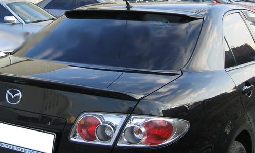 Спойлер на стекло Mazda 6 2002 – 2007 г.в. (седан и хэтчбек) – красивый и функциональный предмет Вашего автомобиля. Задний козырек на стекло для Mazda 6 изготовлен из крепкого стеклопластика (фиберглас), который хорошо поддается обработке. Крепится на стекольный герметик или двусторонний скотч. Козырек грунтованный, Вы можете покрасить его в любой нужный Вам цвет.
