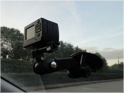 Регистратор крепится либо на горизонтальную поверхность при помощи клейкой ленты, либо на лобовое стекло. Во втором случае используется специальная присоска. Параметры модели позволяют ей успешно бороться с вибрациями - главными врагами четкого изображения. На фасаде прибора есть лазерный указатель, это своеобразная подсказка для точной ориентации аппарата.