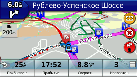 Голосовые команды подскажут Вам нужное направление, чтобы побыстрее добраться до места назначения, с успехом миновав при этом пробки. Кроме того, на магистралях перед перекрестками навигатор посоветует, на какую полосу лучше перестроиться. Специальная команда "Где я?" поможет найти ближайшие больницы, заправки и полицейские участки.