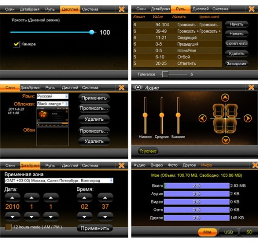 Прибор читает множество видео-, аудиоформатов и даже текстовые файлы: MP3, WMA, WAVE, MPEG1/2, MPEG4, WMV, JPEG, GIF, PNG, BMP, MS-Word, Excel, PowerPoint, Adobe PDF, *.txt. Для радио- и телелюбителей есть FM и аналоговый тюнеры. Кстати, музыку можно прослушивать, не прекращая при этом работу навигации.