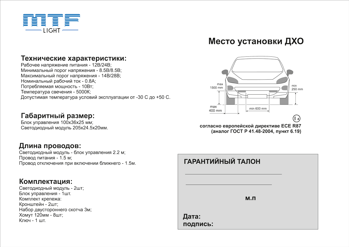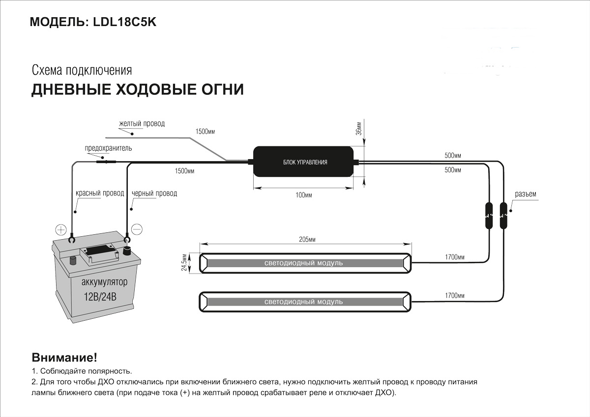 Благодаря специальному датчику, огни загораются, как только Вы поворачиваете ключ зажигания. Когда Вы включаете ближний свет или габаритную подсветку, светодиоды LDL18С5K автоматически перестают работать.