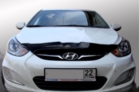 Темный дефлектор капота для Hyundai Solaris — это щиток из орг.стекла, который крепится на переднюю часть капота. Разработан специально для Hyundai Solaris от 2010 г.в. Защищает лакокрасочное покрытие вашего автомобиля от механических повреждений, лобовое стекло от загрязнений и при этом является элементом тюнинга.