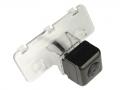 Камера заднего вида PMS для Toyota Camry устанавливается вместо фонаря подсветки номерного знака с сохранением подсветки. Широкий угол обзора в 170 градусов. Есть парковочные линии. Работает исправно в широком диапазоне температур.